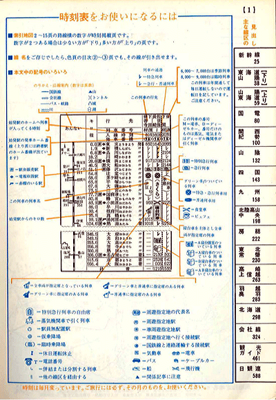 “蒸気機関車で引く列車”マーク入りの凡例ページ。『ダイヤエース時刻表』1970年10月号