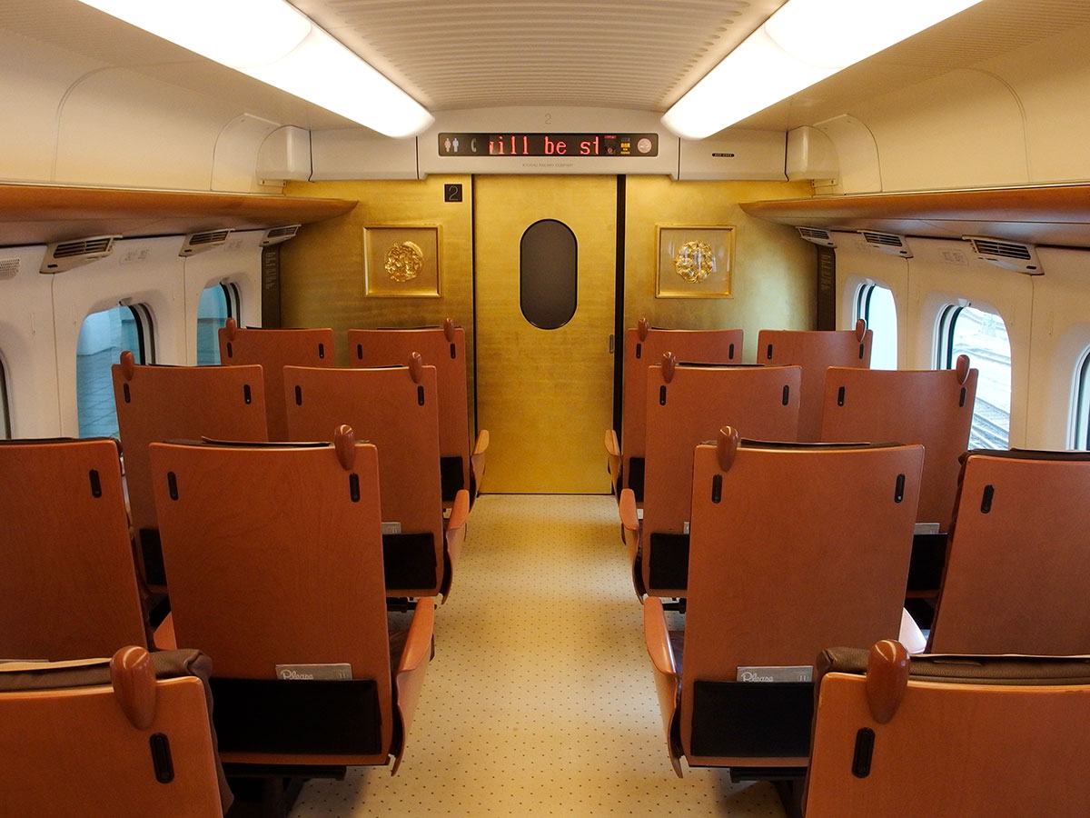 九州新幹線800系には、壁に金箔が貼られた車両もある。