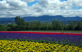 美しい花々が咲き乱れるファーム富田。ラベンダーのほか、赤やピンクのポピーなども楽しめる