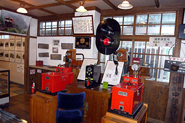 昭和の駅の風景が再現されている屋内展示場。各種模型や実物部品、飯田線の歴史的写真などを展示