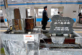 伊予西条駅ホームの名水「うちぬき」は美味しい水で、名水百選にも選定されている
