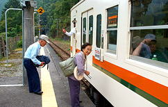 愛知県豊橋市と長野県辰野市を結ぶローカル線がJR飯田線です。同線には多くの木造駅舎があります。愛知、静岡、長野3県の県境間近にある小和田(こわだ)駅もそのひとつ。豊橋駅から初電に乗った私は、2時間以上かけやっと山間の駅にたどり着きました。トンネルとトンネルの間の小和田駅は、秘境駅として知られています。駅舎は飯田線の前身で三信鉄道時代の昭和11年に建てられました。かつて、駅の周辺には雑貨屋や小さなお茶の工場がありました。現在地元の利用者は、近くに住んでいる一家族と郵便屋さんで、あとは秘境駅ファンが降りるくらいです。数少ない利用者の宮下茂正さんは「昭和14年からこの駅を利用しているよ。以前はこの近辺には集落があり賑わっていた」と話しながら電車に乗り込みました。ホームからは満々と水を湛えた天竜川も見え、自然を堪能できる駅です。