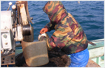 古くからフグ漁が盛んに行われてきた周南市は、現在のトラフグ漁の礎を築いた町でもある。フグを傷つけずに捕獲できる最良の漁法として、いま最も普及している「フグ延縄漁(はえなわりょう)」は、この町で生まれたもの。鋭い歯を持つフグは網を噛み切って逃げてしまうため、フグの歯にも負けない鋼線を使った同漁法が、明治30年代に周南市の粭島(すくもじま)に住む漁師・高松伊予作さんによって考案された。