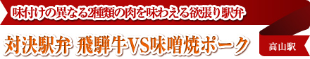 味付けの異なる2種類の肉を味わえる欲張り駅弁 対決駅弁 飛騨牛VS味噌焼ポーク 高山駅