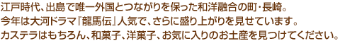 長崎と言えばカステラ。数多くある店はいずれ劣らぬ味わいですが、ダントツの人気がポルトガル人から製法を学び、寛永元年(1624)に創業した老舗中の老舗「福砂屋」です。