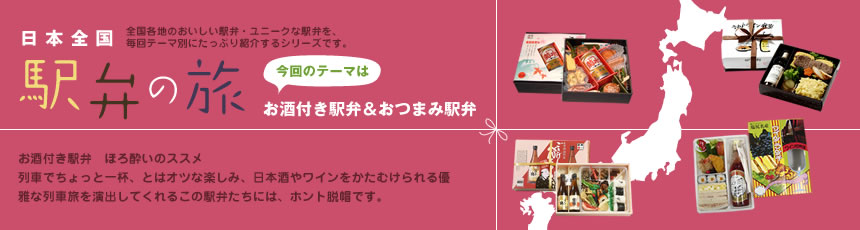 松江の地酒が2本入った駅弁。甘口・辛口2種類のお酒を味わえるのはこの駅弁だけ。おかずには、宍道湖七珍と呼ばれる、しじみ、うなぎ、白魚などの食材がふんだんに盛り込まれています。要予約。