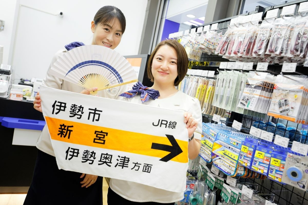 特に目を引くアイテムとして気になるのは、「N700Sグリーン車座席モケット柄ネックピロー」と、同じくグリーン車つながりで、グリーン車を利用した際にパーサーさんからいただける、あのおしぼりが50本セットになった「めんです」。そして知る人ぞ知る、三重県松阪駅の階段部分にある、ちょっとおしゃれな形をした乗換案内看板をモチーフにした「名松線階段サインフェイスタオル」などなど。JR東海のアイデンティティを色濃く残しつつも、どこかスマートな印象が強い同社の新たな一面が垣間見られる、柔軟な発想から誕生したグッズが存在感を放っています。