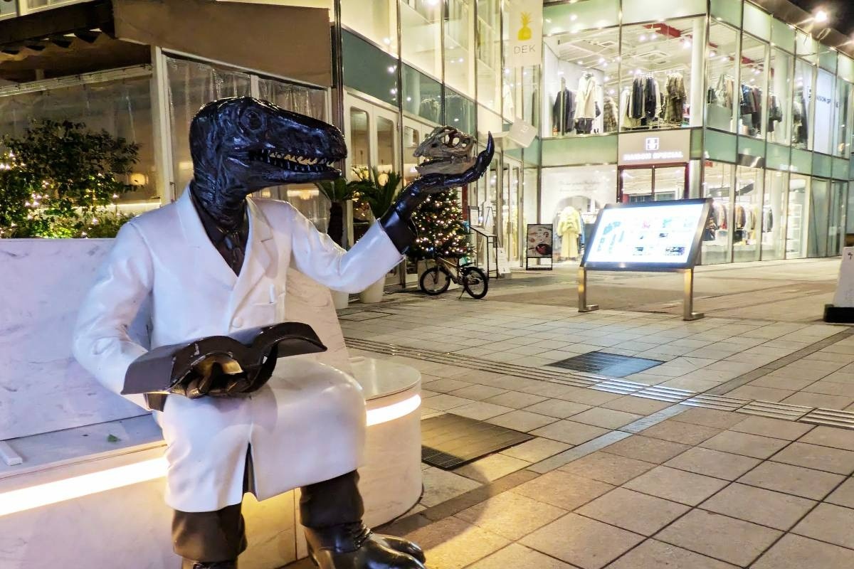 JR福井駅と同じ、恐竜のオブジェが出迎えてくれる