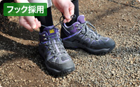 着脱が容易なシューレースフックを採用。シューリングもひもを通しやすい構造