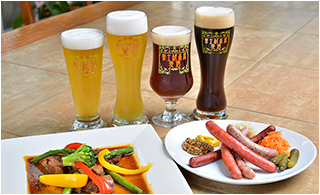 ビールは486円~。牛肉のヴァイツェンビール煮1782円、ソーセージ盛り合わせ1458円などビールに合う料理も豊富。