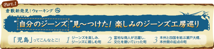 国産ジーンズが初めて誕生したのは昭和35年、倉敷市児島がその地である。江戸時代からの綿織物と染めの技術を生かしたイノベーションだった。市内には染めから織りまで一貫して製品を作る「藍布(らんぷ)屋」の染め工房「藍のぞき」やアウトレットを併設する「ベティスミス・ジーンズミュージアム」、自分でジーンズのアイテム作りを楽しめる「わがまま工房」等々、たくさんのジーンズメーカーがあり、まさにジーンズの聖地。体験したり試着したりしていると、児島の町歩きは時間がたっぷり欲しくなる。週末と祝日はJR児島駅起点のジーンズバスが走っているので、うまく使うと便利である。