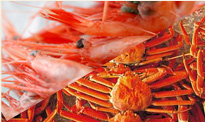 一般的には甘エビと呼ばれる、甘みが強くとろけるような食感のアカエビ。丸い甲羅のベニズワイガニは、ジューシーな旨みがたまりません。