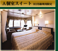 - 1号車と2号車に各1部屋(別タイプ)しかない貴賓室。ツインベッド、テーブル、ビデオモニター、シャワー、洗面所、トイレを完備。