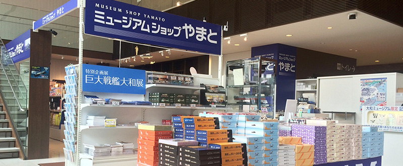 戦艦「大和」の模型や海軍にちなんだタオル、文具などのオリジナルグッズが購入できると人気。