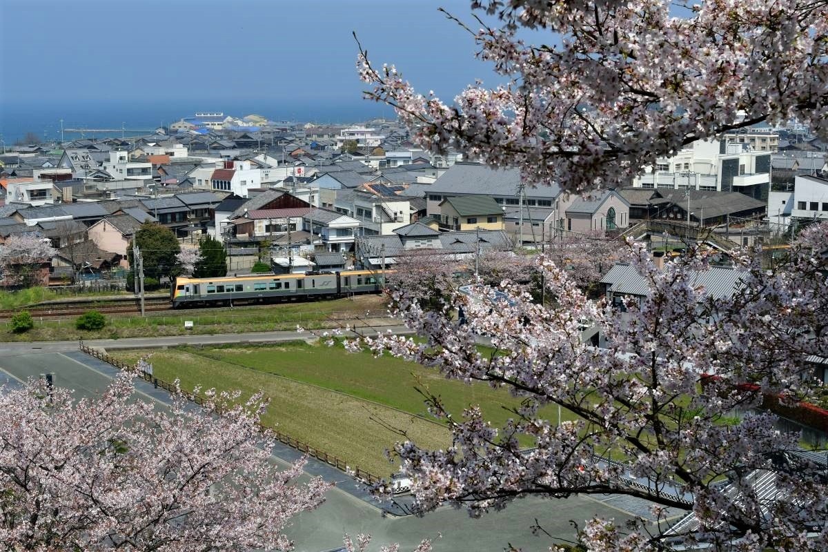 高松から多度津までは、讃岐平野を進みます。周辺には、讃岐平野特有のおむすびのような形をした小高い山が点在。宇多津駅の先で左手に見える円錐状の山は、「讃岐富士」の別名で知られる飯野山(422m)です。土器川を渡ると、360年前に築かれた天守が現存する丸亀城も見えてきます。