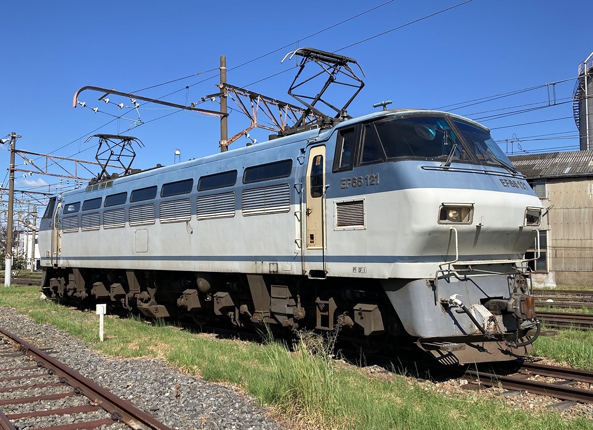 EF66形121号機は、JR貨物発足後の貨物列車の増発に対応するため、国鉄時代製作のEF66形をベースに各部の仕様を変更して投入された。現在も東海道線などで貨物列車をけん引している。