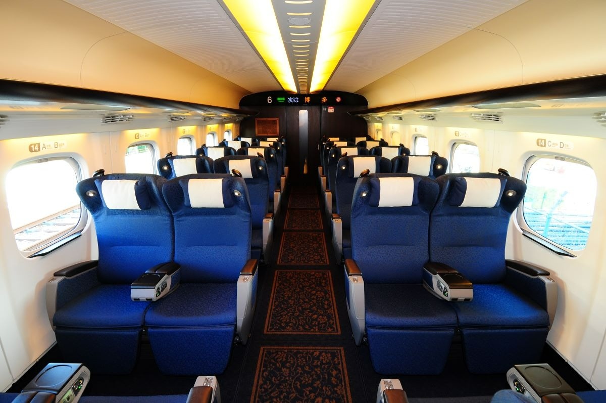 濃菜種(こいなたね)色のシートは「ひかりレールスター」の「サルーンシート」から座り心地の向上を図ったもので、グリーン車並みのゆとりと快適性を兼備。