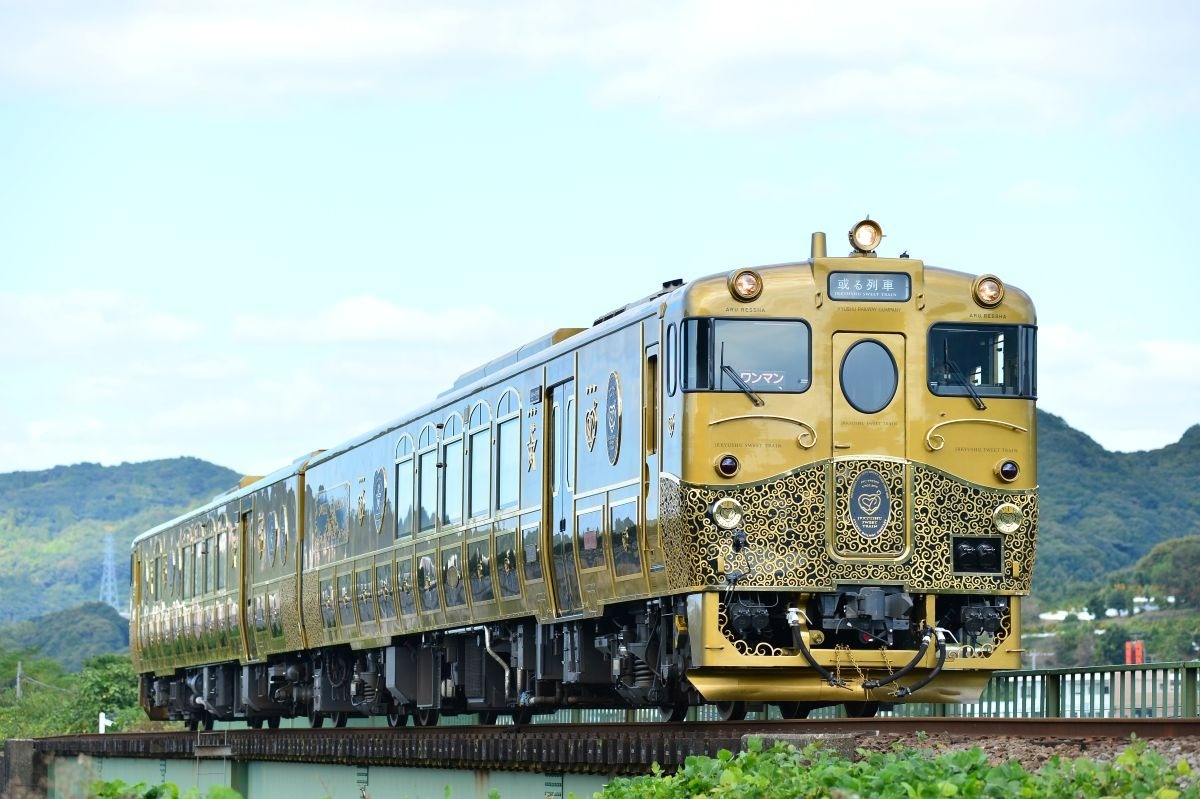 「或る列車」は、福岡県の博多駅と大分県の由布院駅とを結ぶ2両編成の観光列車です。100年以上前の豪華客車を復刻した車両で、九州の食材にこだわったコース料理とドリンクを堪能できます。