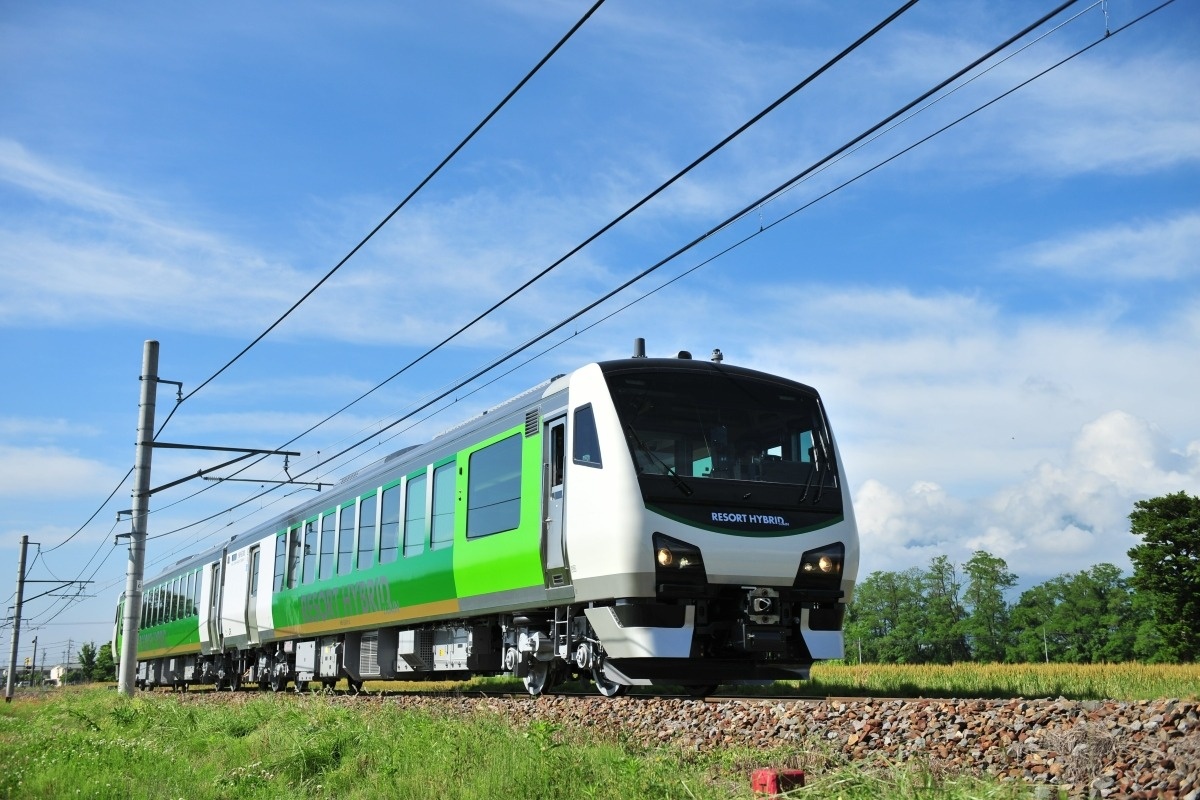 発電用のディーゼルエンジンとリチウムイオン蓄電池を組み合わせ、加速時はエンジンや蓄電池からの電力を使って、電車と同様に制御装置でモーターを駆動。ブレーキ時には運動エネルギーを電気エネルギーに変換して、蓄電池に充電します。これにより、一般気動車(キハ40・48形)を改造した従来のリゾート車両と比較して、燃料向上や排気中の大気汚染物質の大幅削減を実現。駅停車時や発車時の騒音も少なくなっています。