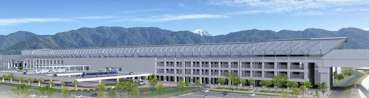 山梨県駅は甲府市の大津町と高室町、中央市高橋地区にまたがる延長約1200㍍の高架橋等構造物で、中央自動車道と新山梨環状道路に挟まれた場所に建設。想定では品川まで約25分、名古屋まで約45分で結ばれる。