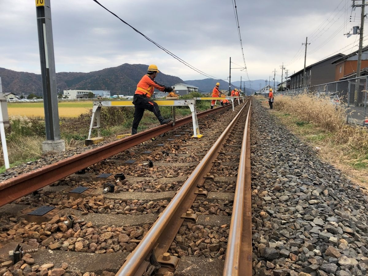 「たとえば、レール交換の際は『定尺レール』と呼ばれる長さ25mのレールを事前に数本ずつつなぎ合わせて線路際に置いておき、20~30人の作業員が片側から順番に交換していきます。最近ですと、神野~厄神間で約300mの作業を一晩で行いました。加古川線は最終列車から始発列車までの時間が山陽本線よりも長く、作業時間に比較的余裕があるのですが、それでもこの距離が限界ですね」(箍さん)