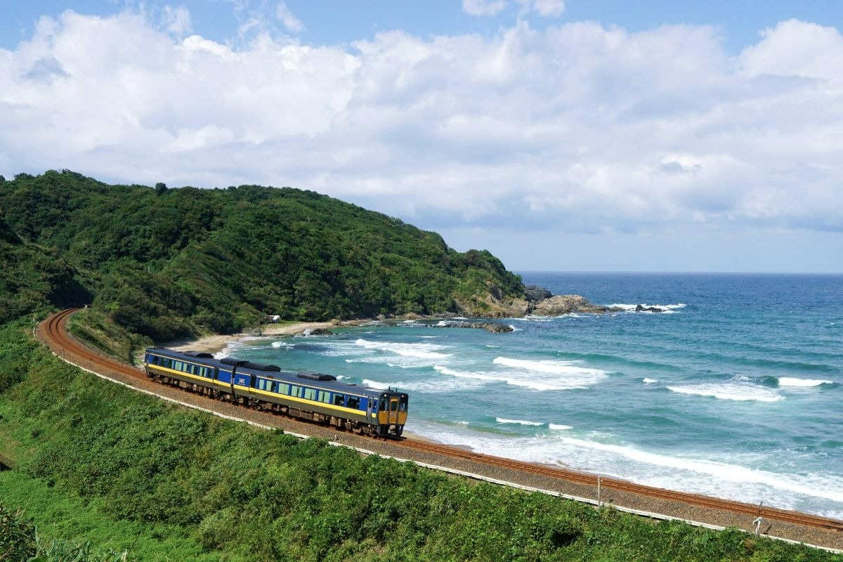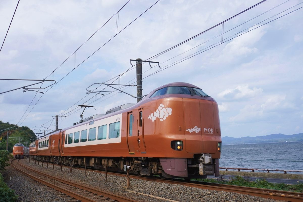 岡山からカーブが続く伯備線を、振り子式車両の車体を傾けながら中国山地を越えていく特急〔やくも〕。新型の273系は、普通車にも可動枕があり、背もたれのフィット感が心地いい。さすが、2025年の鉄道友の会・ブルーリボン賞を受賞した車両だけある。列車は山陰本線に入ると、足取りも軽やかに中海・宍道湖畔を駆け抜けていく。