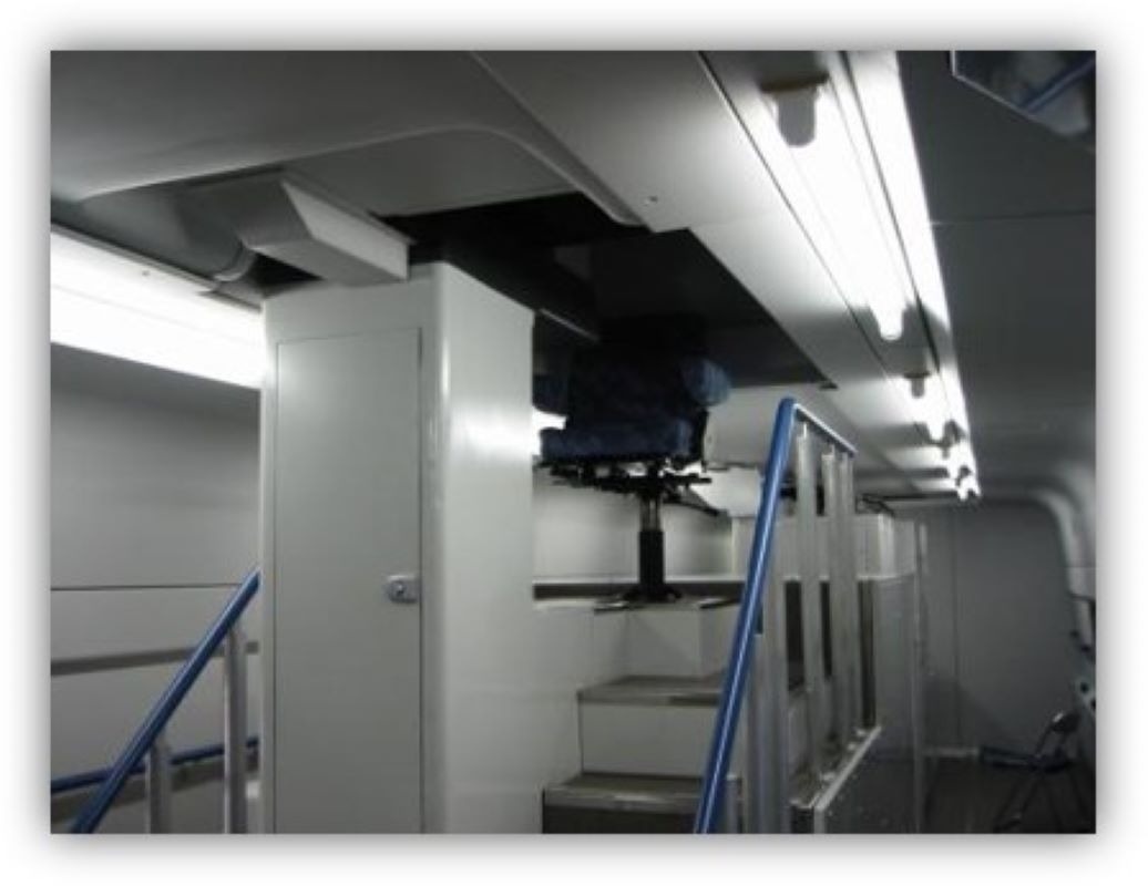 3号車には、架線やパンタグラフの様子を調べるための観測ドームを設置。観測ドームには座席が用意され、検測員は座って検測することができます。架線や2号車のパンタグラフの動きを高性能カメラで撮影し、その映像を1号車の係員が監視しています。また、データ整理室もあります。