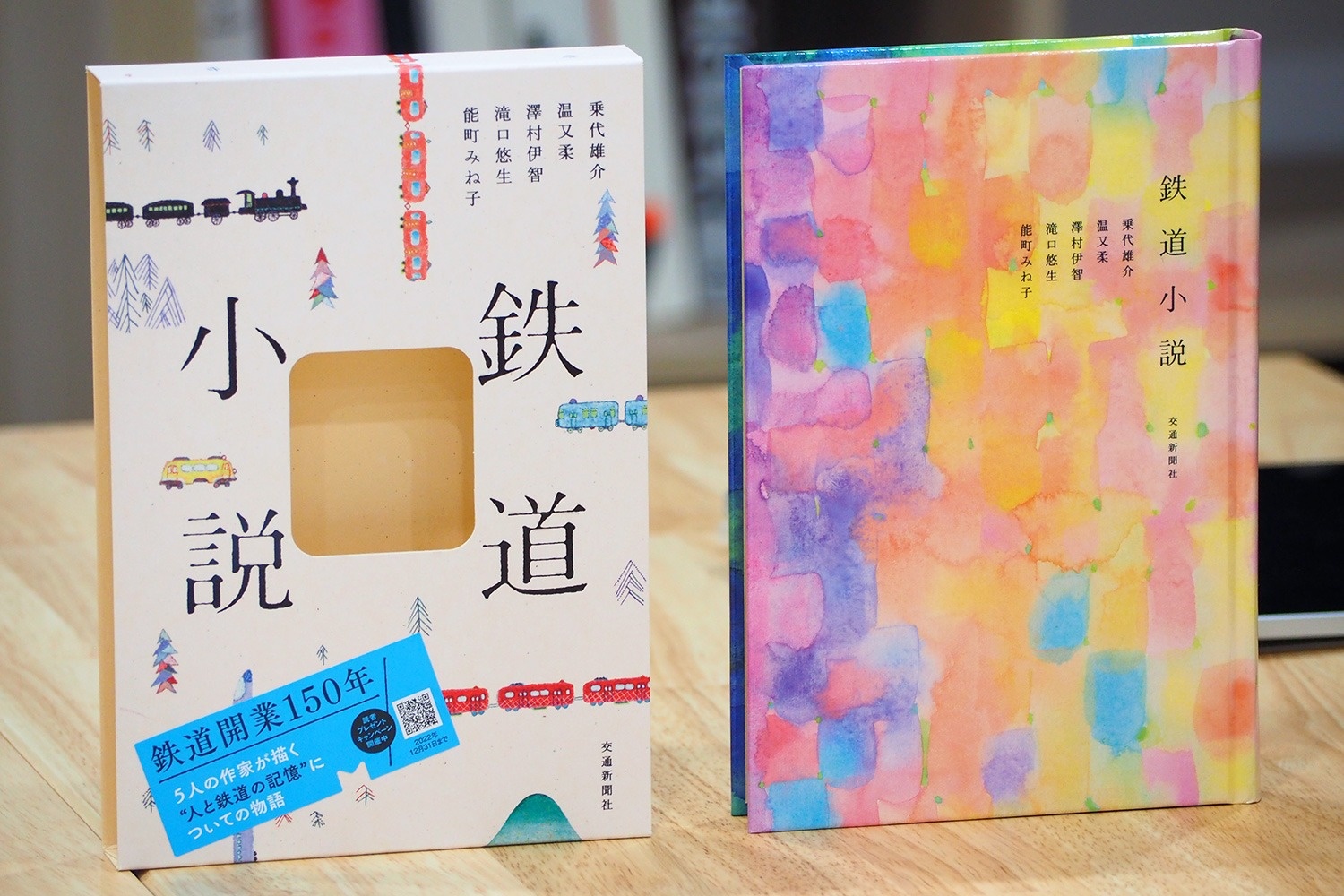 2022年10月、鉄道開業150年の節目に『JR時刻表』『散歩の達人』などを発行する交通新聞社が出版した短編集『鉄道小説』は、スリーブケース付きの上製本。乗代雄介氏、温又柔氏、澤村伊智氏、滝口悠生氏、能町みね子氏という5名の作家の共演もさることながら、その装丁(ブックデザイン)もWebデザイン・グラフィックの情報サイト「MdN Design Interactive」で紹介されるなど注目を集めています。
