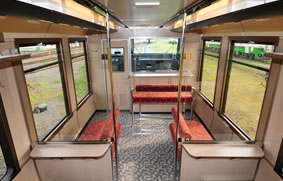 「みのり」は、臨時列車の快速「リゾートみのり」として陸羽東線小牛田(こごた)〜新庄間で運転中(土曜・休日などは仙台〜新庄間)。旅の風情を演出してくれるのは、沿線の景色を映し出す大きな車窓。「奥の細道湯けむりライン」の愛称で親しまれている陸羽東線の絶景を堪能することができます。