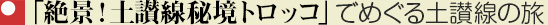 毎年春と秋の行楽シーズンに土讃線阿波池田~大歩危間で運転されていた「大歩危トロッコ」が、2015(平成27)年春から運転区間を琴平駅まで延長し、新たに「絶景!土讃線秘境トロッコ」として運転されています。トロッコ乗車区間がスイッチバックの秘境駅・坪尻~大歩危間となるため、車窓の見どころが大幅に増加しています。