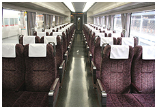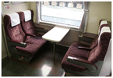 3両編成の列車の2・3号車の車端に設置された4人掛けのボックスシート。4人の家族・グループ旅行などで利用することができる。