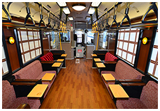 車内の中央部は左右に4人掛けのボックスシートと2人掛けのボックスシートを配置。カップルや家族連れ・グループ旅行での利用に最適。