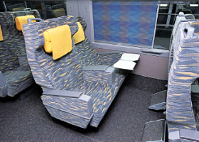 400系の東京寄りの先頭11号車に連結されるグリーン車。座席配置は2+1席のゆったりサイズ
