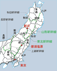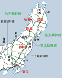 東北新幹線東京〜福島駅間では山形新幹線のE3系、400系「つばさ」も連結するE4系