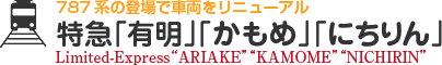 この改正では、鹿児島本線博多〜熊本・西鹿児島間の485系特急「有明」28往復中19往復が「ハイパーサルーン」の車両愛称が付けられた783系での運転となり、特に博多〜西鹿児島間を約4時間5分で結ぶ最速の1往復には「スーパー有明41・14号」の愛称が付けられました。