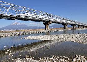 東海道区間は制限速度のかかるカーブも多く、これが最後のスピードアップのネックとなっていました。新幹線としては初めての「車体傾斜システム」が導入されましたが、これは速度制限のかかるカーブでも空気バネで車体をわずかに1度傾かせ、制限速度+15km/hでの曲線走行を可能にしています。この1度の傾きが東京〜新大阪間の所要時間を5分短縮するキーポイントになっています。先に採用した新ATCシステム「ATC-NS」の速度・位置情報を利用することで、安全性の確保や乗り心地の向上に役立っています。