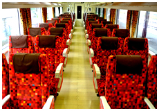 1・2・4号車の普通車指定席は2&2席の座席を配置。号車ごとにシートモケットの色が異なり、雰囲気の違うくつろぎの空間となっている。