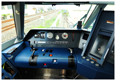 1・6号車、7・9号車(増結時)の2階部分にある、前方の視野が広い運転台。パネル部分には各種メーターやスイッチ類が機能的に配置されている。