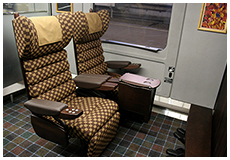傾斜角140度の大型・電動リクライニングシートが装備されたDXグリーン。2席+1席配置の3席のみのゆったりした空間でくつろぐことができる。