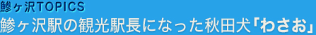 鯵ヶ沢町が全国に誇るアイドル・秋田犬の「わさお」。不細工だけどかわいい“ブサカワ犬”として人気で、今年の春にはなんと映画にもなった名物秋田犬だ。そんなカレが、青森DCにあわせて五能線鯵ヶ沢駅の観光駅長に就任した。すでに「鯵ヶ沢町特別住民」「特別観光大使」でもあるわさお。来年3月までイベントの際などに駅に出勤する予定だ。