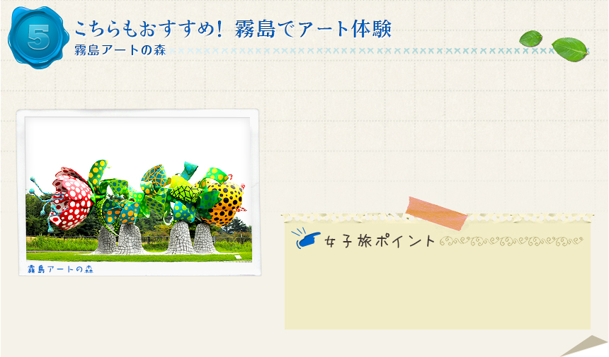 開園時間:9:00~17:00(入園~16:30)。月曜休(祝日の場合は翌日)。2013年2月18~25日は臨時休園。入園料:一般300円、高大学生200円、小中学生150円。交通:粟野駅から湧水町営ふるさとバス約20分の霧島アートの森下車すぐ。TEL.0995-74-5945