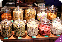 昭和の町を訪れたら、新規オープンの豆菓子店でおみやげを手に入れて。約30種類もの豆菓子から、きっとお気に入りがみつかるはず。
