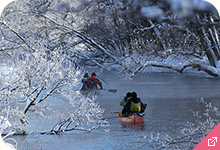 また厳冬には、「御神(おみ)渡り」といわれる、ばりばりと音を立てて迫り上がる氷上現象も見られる屈斜路(くっしゃろ)湖、結氷した湖面が神秘的な青さを見せる摩周湖などを巡るのもいい。さらに白銀の世界を水上から眺めるカヌーなど、冬のアクティビティも豊富。神々しさをまとう大自然を五感で体感しよう。