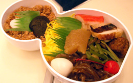新潟駅で買った雪だるま型のかわいい駅弁。中は色とりどりの華やかさ