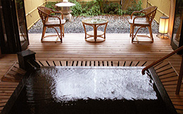 戸倉上山田温泉の宿でのんびりと湯浴みした貸切露天風呂。源泉かけ流しの温泉が心地よい