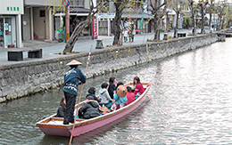 掘割が縦横に流れる柳川、川下りの舟がよく似合う。日本的で詩情豊かな水郷風景に心が和む