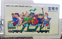 宝積寺駅も縁起良い駅として知られている。七福神が列車に乗った烏山線の案内は秀逸です
