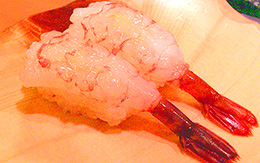 金沢の寿司店で食べたガサエビ(ガスエビ)の握り。ねっとりとした甘さがたまりません