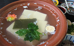 京都では熱々の湯豆腐を夫婦でどうぞ。当地では湯豆腐は濃いめで甘めの「だし」でいただく
