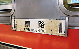 網走から釧路へ行く快速「しれとこ」のサボ(行先票)。釧路までは3時間半ほどの旅となる